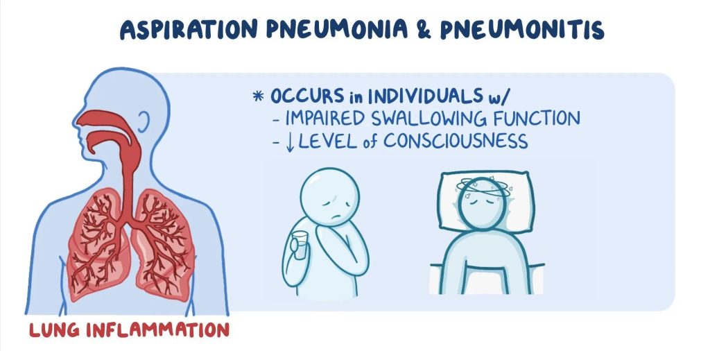 - Aging: Older adults are more likely to have swallowing difficulties, and their immune systems may be less effective at combating infections.
