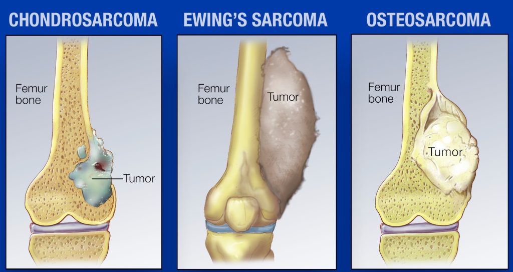 - The two most common types of primary bone cancer are osteosarcoma and Ewing’s sarcoma