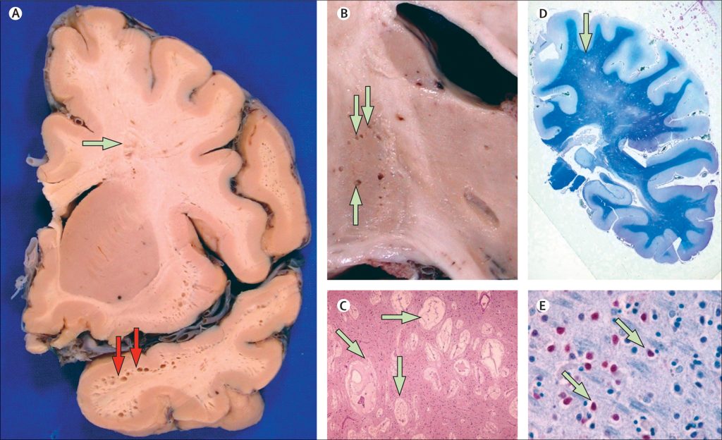 - Brain MRI scans showing white matter changes (especially in the temporal lobes)