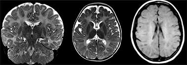 - Brain MRI showing abnormal myelin formation