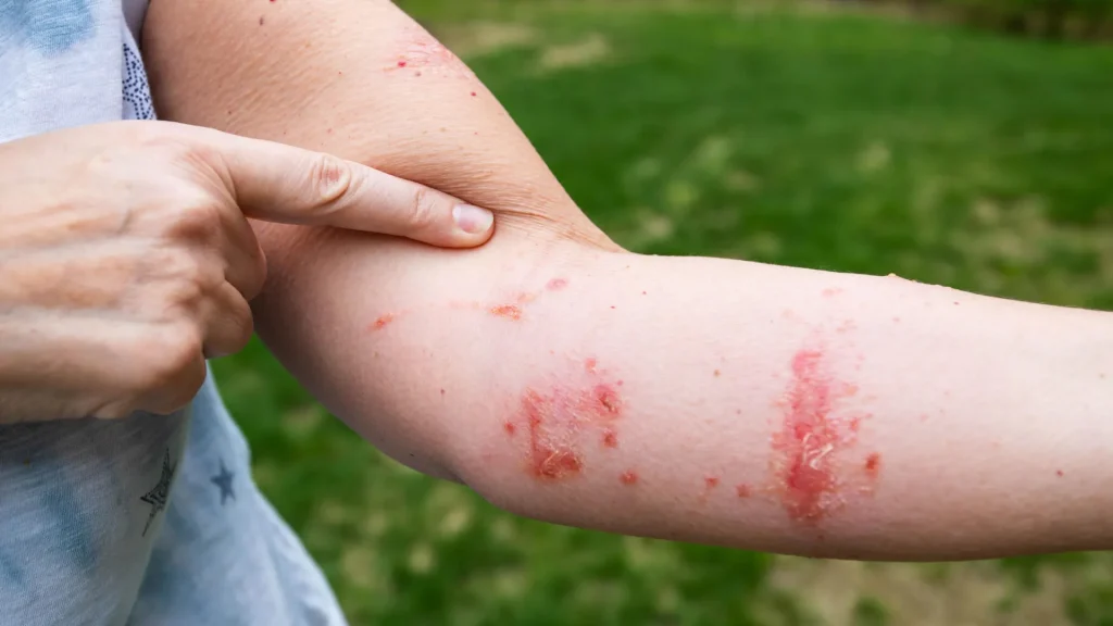 - Contact with urushiol oil, found in poison ivy, poison oak, and poison sumac plants.